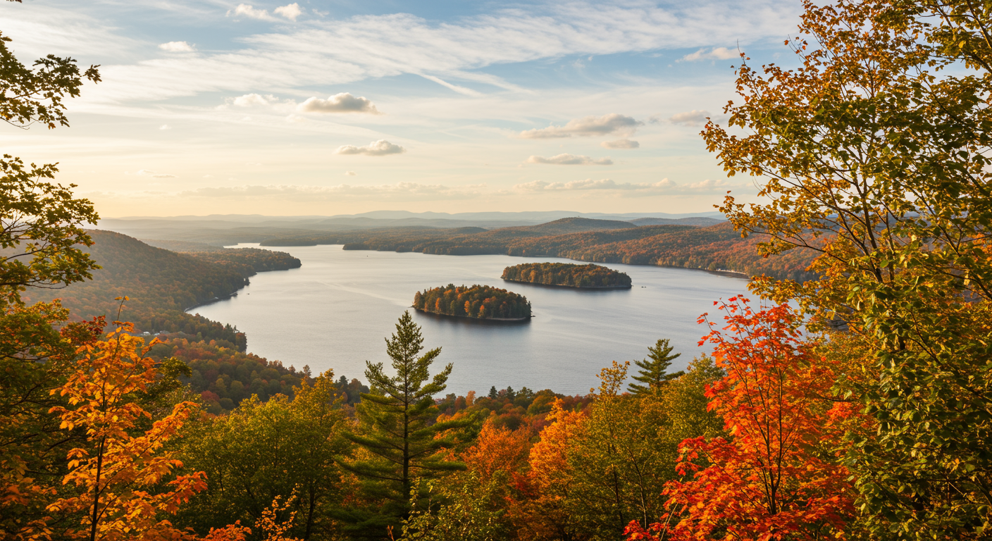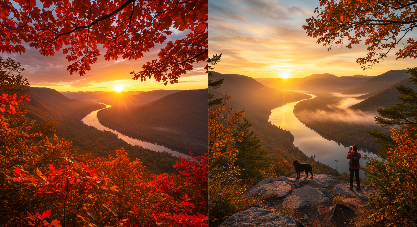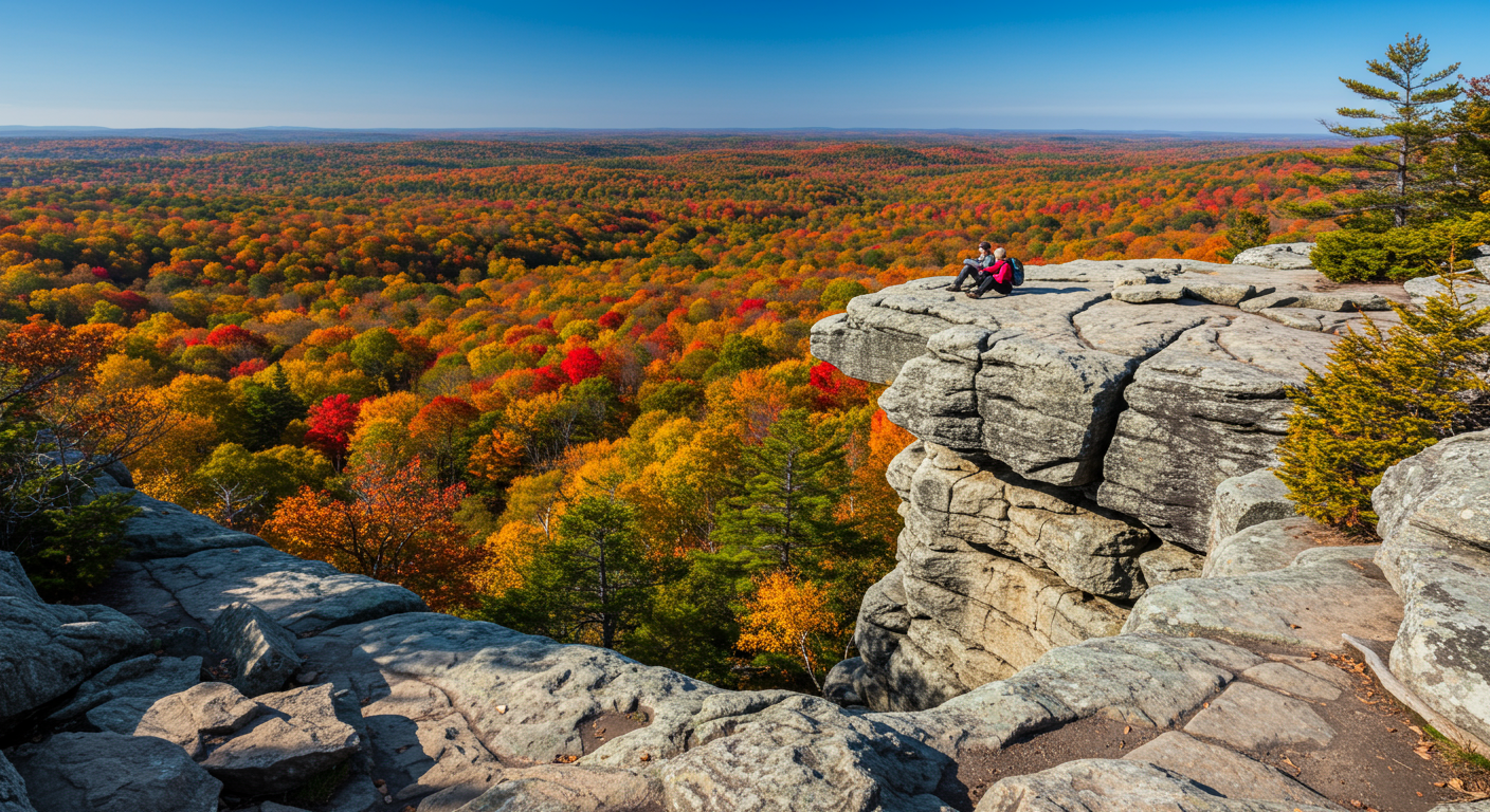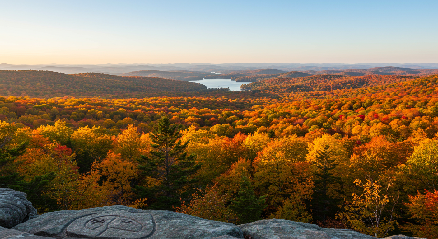 For a relatively short hike with a big payoff, the Giant Ledge Trail in the Catskills is a must-do. The 3-mile round-trip trek ascends through beautiful wooded trails, culminating at the ledge, where you'll be greeted by stunning panoramic views of the surrounding mountains, glowing with fall colors. It’s a favorite for photographers and nature lovers looking to immerse themselves in nature’s fall spectacle.
