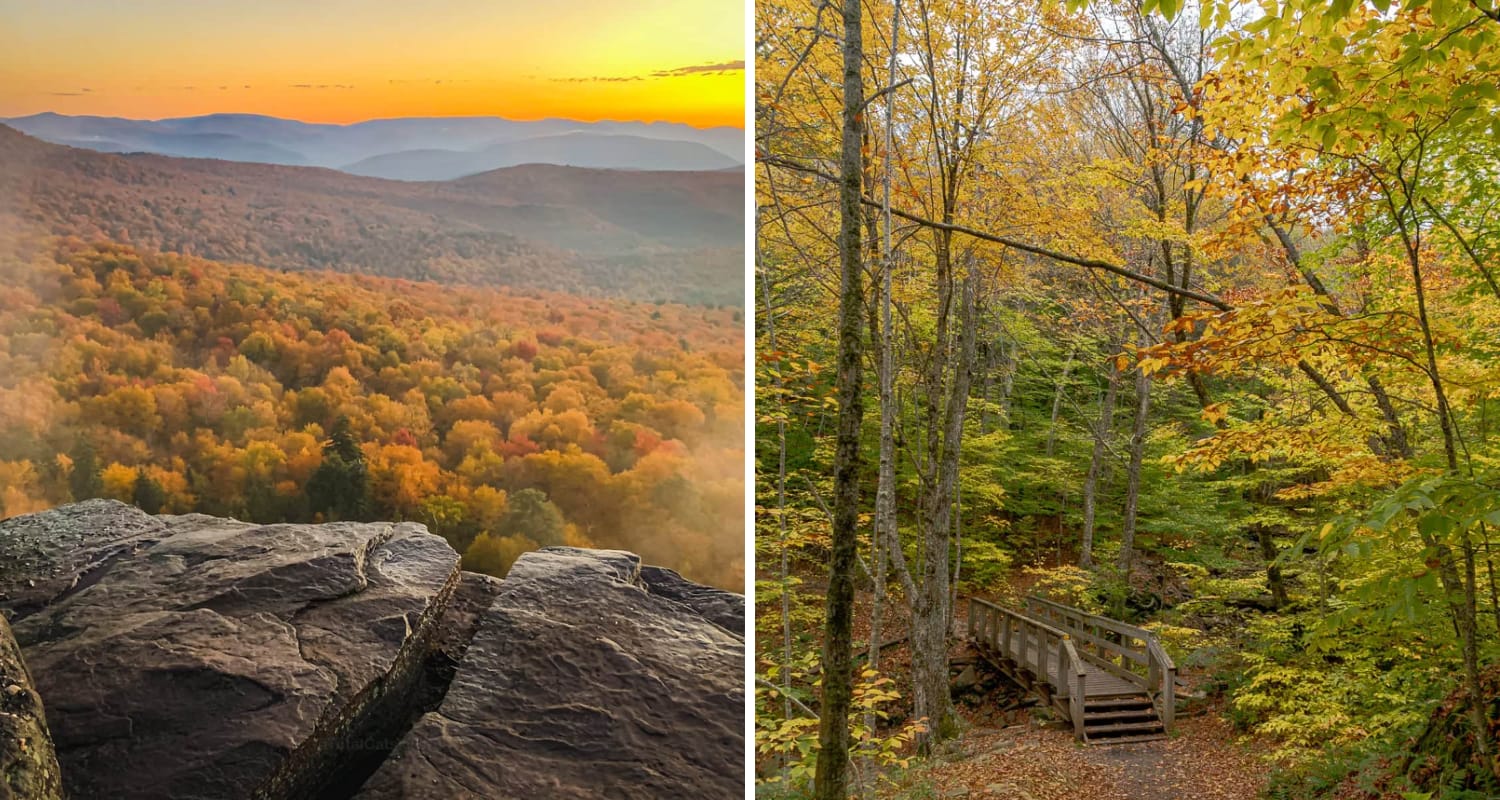 This 4.6-mile hike combines history, adventure, and epic scenery all in one. The trail is a steady climb that passes by eerie, abandoned hotel ruins, giving it a unique, adventurous vibe. At the summit, you’ll find an old fire tower — climb it to get an unparalleled view of the Catskills, covered in vibrant autumn foliage. A perfect mix of culture, history, and nature for a memorable fall outing!