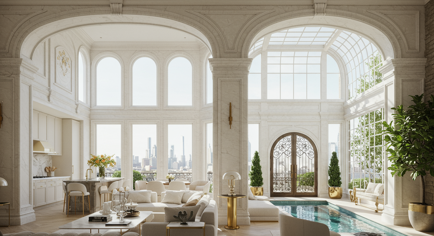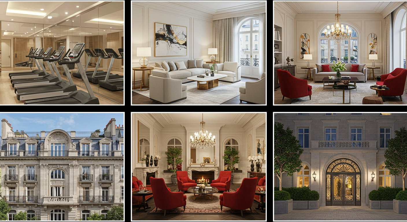 The interiors reflect timeless elegance, with grand proportions and modern conveniences. Amenities include a rooftop terrace, state-of-the-art screening room, and a fitness space, ensuring a luxurious living experience. The lobby is attended 24/7, providing residents with a sense of security and exclusivity.