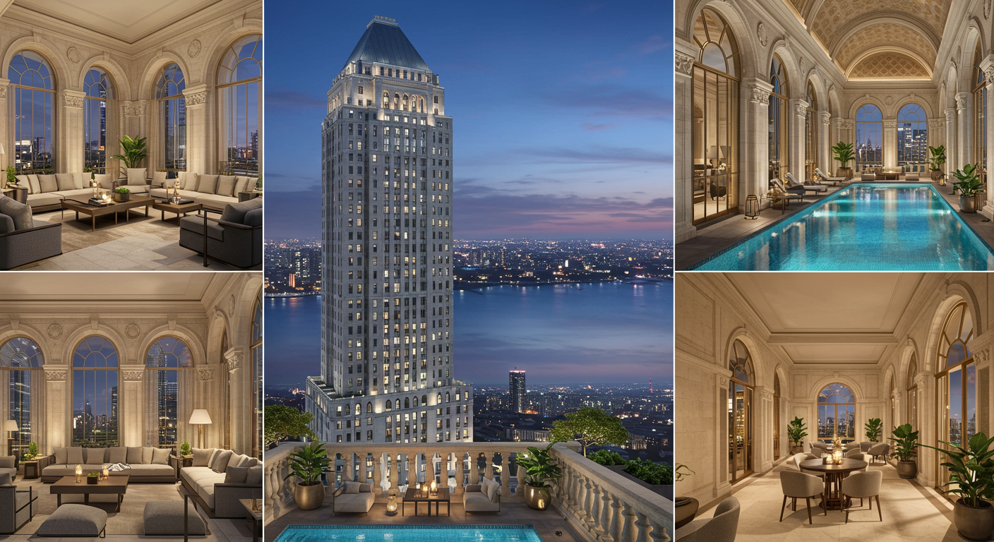 Each of the 15 residences features direct elevator access to a private landing, along with luxury finishes such as Calacatta Gold countertops and Miele appliances. Residents benefit from a rooftop lounge with Central Park views, a private cinema, and a fully-equipped fitness center, alongside additional conveniences like a pet spa and storage options.