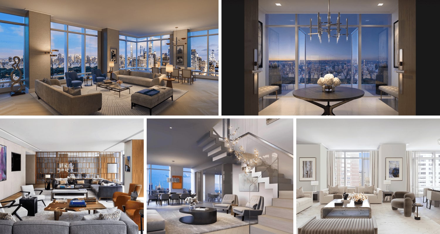 Residences range from 1,200 to over 5,000 square feet, featuring open floor plans, floor-to-ceiling windows, and high-end finishes. Prices start at approximately $2.5 million, with larger units and penthouses exceeding $10 million.