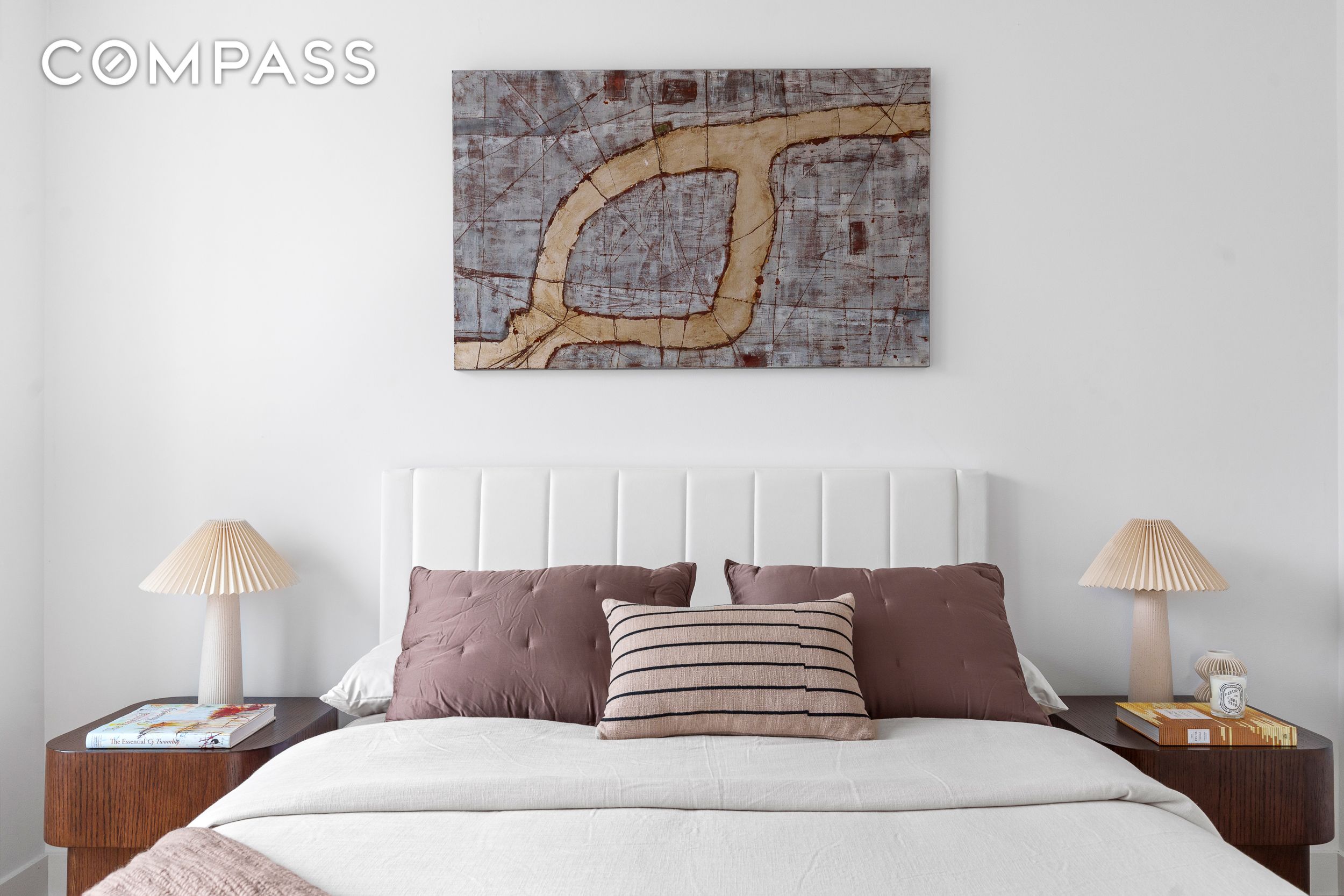 The king-size bedroom enjoys open views and a generous closet, providing both comfort and tranquility in the heart of the city.